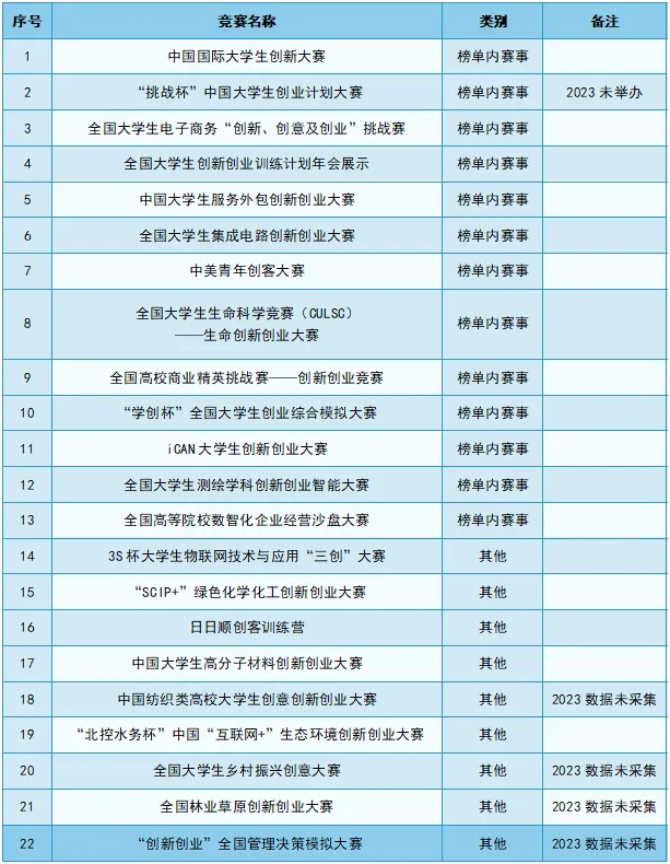 备注2:榜单内竞赛按照竞赛入榜年份、竞赛名称首字笔画从小到大进行排序,其他类别竞赛按照竞赛名称首字笔画从小到大进行排序。