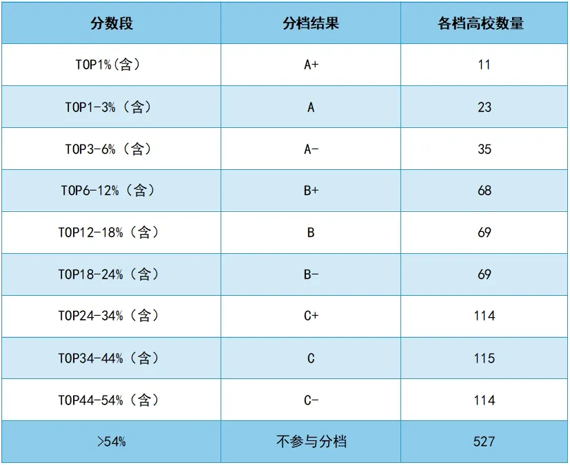 分档结果及各档高校数量一览表