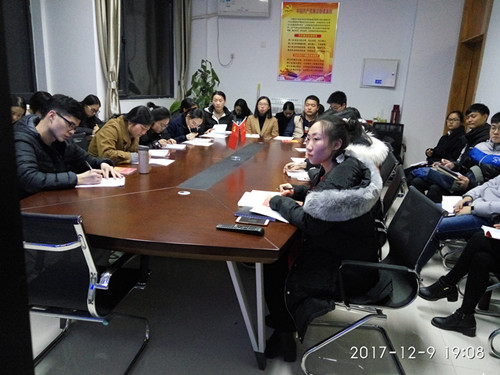 12月9日,硕士生第四党支部在党员学习室开展了以“深入学习十九大报告”为主题的支部大会,全部党员、预备党员以及入党积极分子参加,会议由党支部书记谢婷主持。