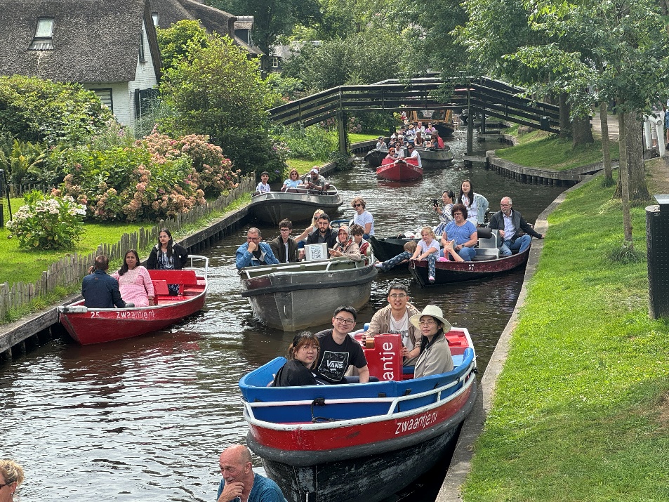 8月8日项目组学生游览了久负盛名的荷兰羊角村。羊角村是一个历史悠久的村落,有“绿色威尼斯”之称。在这里项目组师生们乘着船,欣赏着沿途的美景,一切都如童话般美好而又纯净。