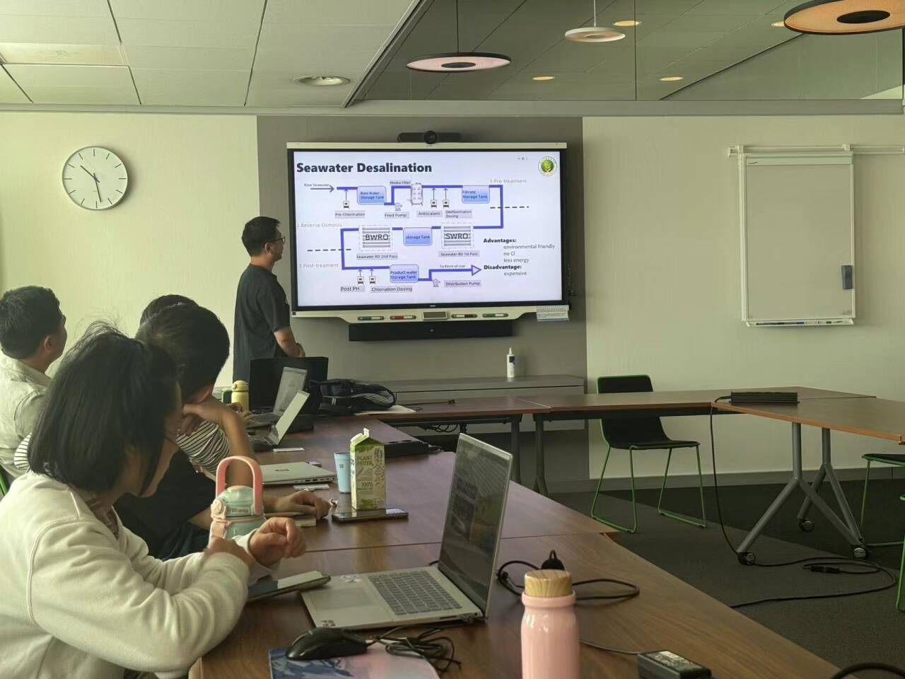 8月1日,项目组访问了荷兰DOW公司,了解了其工业水处理工艺。Niek博士和Martin工程师介绍了超滤、离子交换、RO膜在雨水回收和污水再利用中的应用。