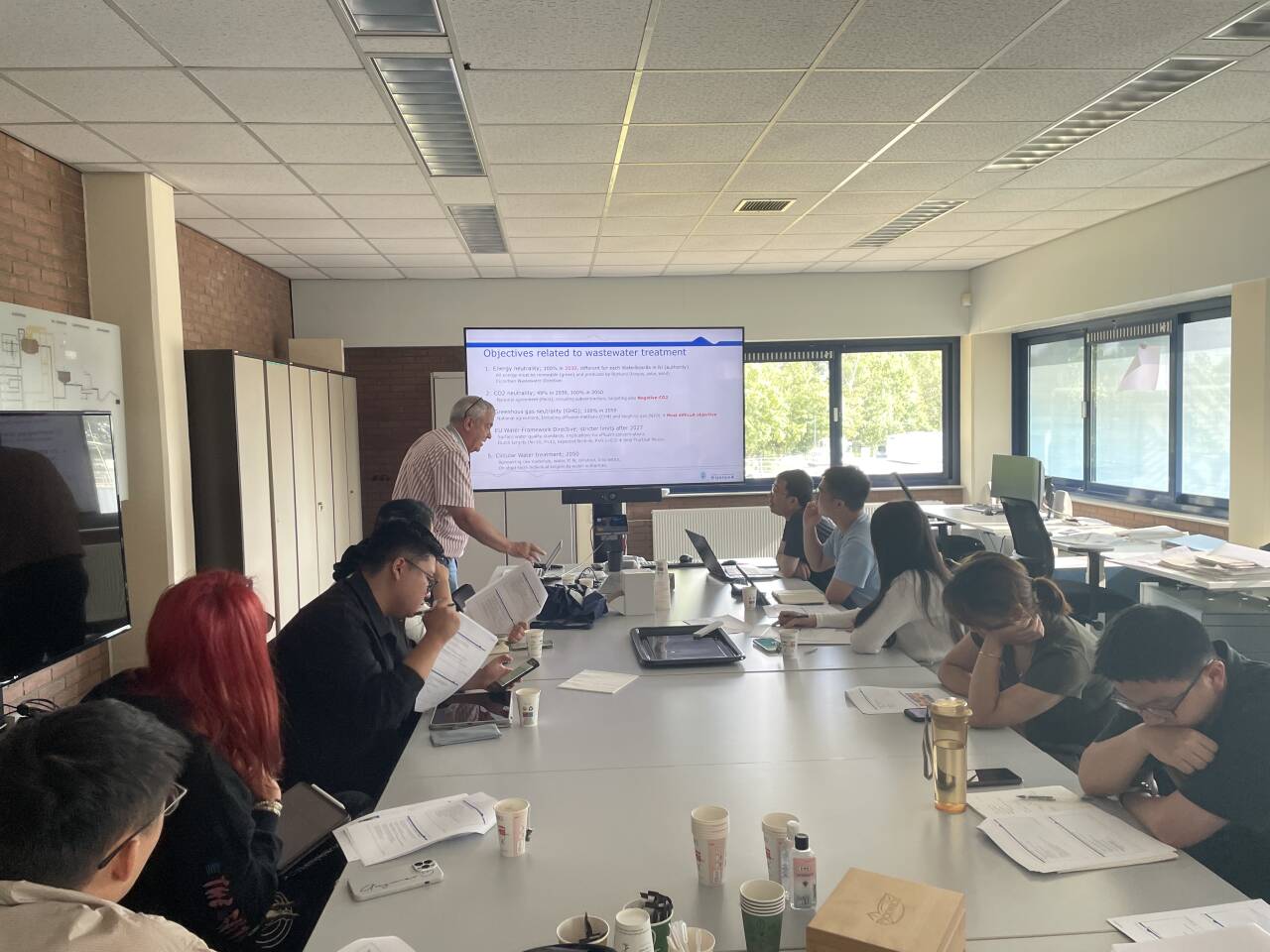 7月29日,项目组访问了代尔夫特理工大学(TUD)土木与地理学院(CiTG)的Water Lab,体验了TUD实验室的独特设置,了解了其在前置实验模拟和自动化资源管理上的优势。Sanne Smith教授讲授了“PFAS去除与降解技术”课程,深入讲解了PFAS的特性、污染来源及水中存在形式,并探讨了多技术组合及实际应用案例。