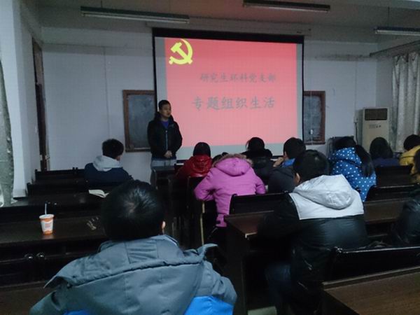 12月11日晚,研究生环科党支部在学院第二会议室开展专题组织生会。会议由支书黄琳琦主持,会议主要内容是党员批评与自我批评,学习十八届三中全会公报。