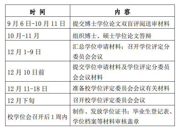 1.请各学院(系、所)务必将上述安排通知到各位导师及研究生,合理安排时间,做好研究生论文答辩和学位授予工作。