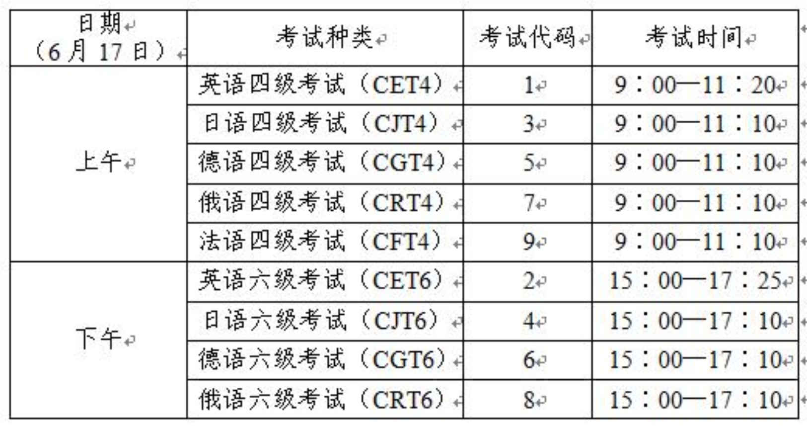 2、同一考生在本次考试中不得同时报考英语四级和英语六级。