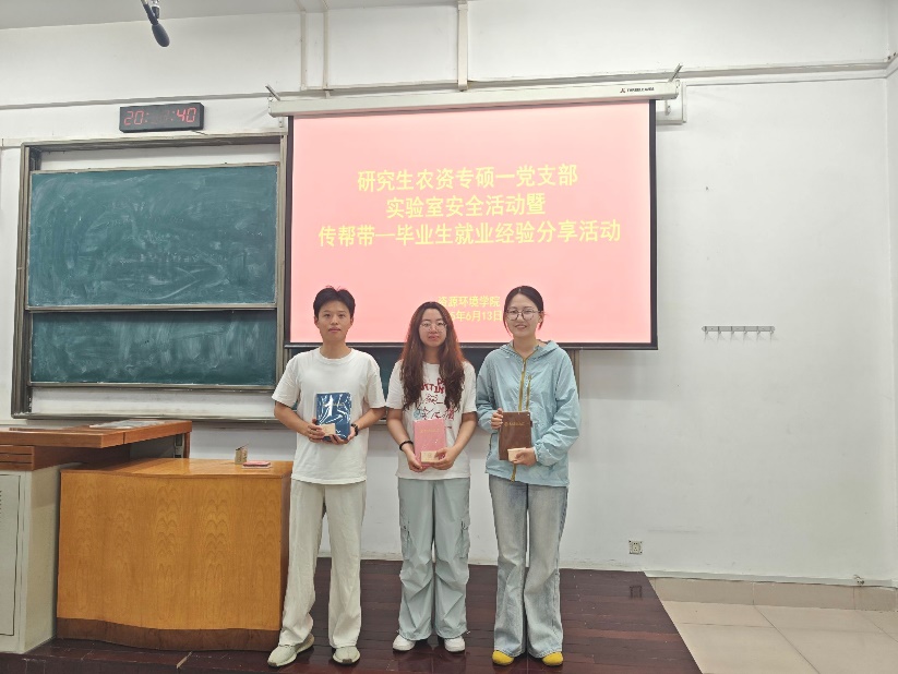 为提高实验室安全意识,充分发挥高年级党员的传帮带作用,6月13日,研究生农资专硕一党支部在三号教学楼3308成功举办了以“实验室安全活动暨毕业生就业经验分享”为主题的主题党日活动。此次活动由党支部副书记邢光耀主持,党支部书记胡昌录出席,党支部全体成员参加。