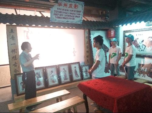 队员们首先来到了华面梦博物馆,民俗专家、馆长刘高潮先生详细地向队员们讲解了皮影戏的起源与发展,流派发展,与秦腔、华阴老腔等其它艺术的渊源等。介绍了陕西皮影的四大流派:有东路的碗碗腔皮影,南路的道情皮影,西路的弦板腔皮影,北路的阿宫腔皮影,以东路皮影最为优秀。华县皮影是陕西东路皮影的代表,与陕西乃至全国其他地区各流派皮影相比较,以其雕刻精美的艺术造型,奇妙精湛的演出技巧,委婉优美的音乐唱腔在众多的皮影流派中一枝独秀。