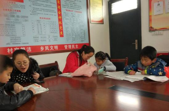 志愿者们首先来到代家坡村委会,与村主任关于支教事宜进行沟通,由于村里没有小学,协商后决定占用村委会的会议室来给孩子们辅导功课。10点左右,孩子们陆续来到村委会会议室,志愿者们开始上课。