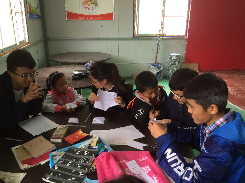 5月14日上午,代家坡的志愿者们在村助曹圣言和吴鸿宇的带领下来到代家坡村委会进行支教活动,此次支教活动与以往不同的是,他们同农学院阳光团工委的同学们进行了合作,实现了对孩子们的一对一辅导,对于孩子们问的每一个题,志愿者们都耐心解答,声情并茂地为孩子们详细解释,每做完一套卷子,志愿者们都会认真检查,标记错误,详细批改,耐心纠错。
