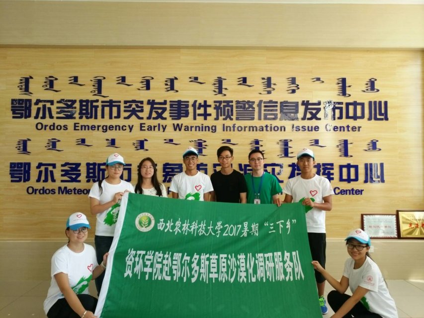 身在草原,自觉应为草原做贡献。在学校组织“青春中国梦 献礼十九大”暑期三下乡活动中,西农伟德体育官网赴鄂尔多斯草原草草场退化调研服务队承担起探寻草场退化原因及宣传防治措施的任务,用自己的力量守护草原的一片绿色。两天时间里,西农学子走进鄂尔多斯气象局和杭锦旗气象局进行气候数据分析和询问相关人员。
