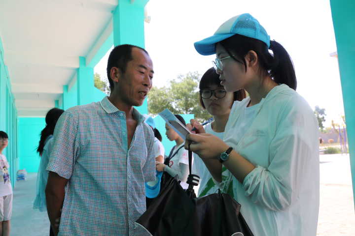 7月12日早晨,队员们采访了刘家洼学校校长和几位在场的老师,在与他们的交谈中,队员们了解到,学校教育设施完善,政府提供的教育保障使大部分学生都能够有学可上。教学制度也一步步的“因地制宜”,对大多数家中农活负担重的孩子而言,一周四天半的上学时间,更加的人性化了。学校里今年还新分来了10名师范毕业的大学生教师,为学校的教育增添了新的活力。对于学校学生们参差不齐的成绩,教师们也会自发的利用课余时间在学校里为成绩不理想的学生进行辅导,对贫困的学生也会进行爱心帮扶。当提到学校留守儿童的教育和关爱问题时,刘家洼学校郭校长表示:“因为政府的教育保障和精准扶贫,留守儿童存在的最大问题还是亲情缺失,精神上缺少关爱会在孩子们的性格、心理、价值观等方面带来一些影响。所以学校的教育比较关注留守儿童的心理健康问题,对留守儿童给予更多的关爱。”