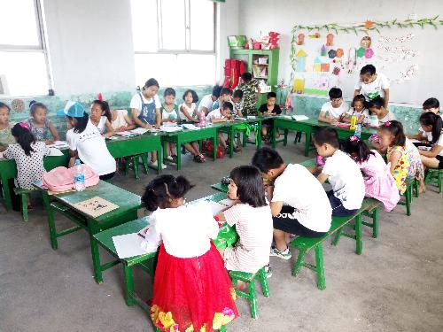 在支教过程中,队员们不拘泥于只教授课本上的知识,更放开眼界,给他们讲各个国家的风土人情,讲大自然发生的神奇现象,也给他们讲革命先烈的光荣事迹,这样不仅丰富了支教内容,让支教生动活泼,更开阔了他们的眼界,让他们更好地了解,认识这个世界。一位老奶奶在接孩子的时候对支教队员说:“你们这些娃太厉害咧,我家‘碎娃’回家给我讲了好多东西,我以前都不知道咧。”小朋友在旁边奶声奶气地说:“哥哥姐姐可厉害了呢,懂得的东西特别多。”队员们听了心里也是美滋滋的,感觉一天的劳累都不算什么了。