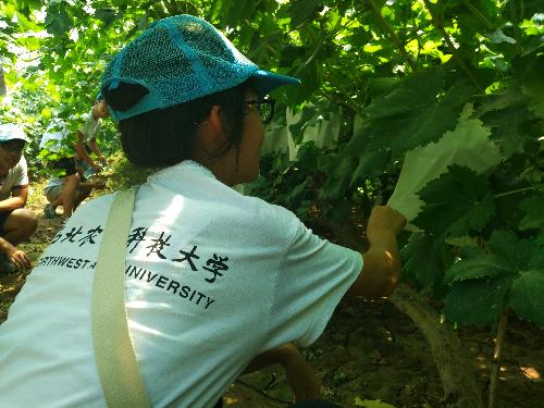 村里的基本条件得到改善之后,发展产业便成了乾落村的重中之重,队员们一起到达了乾落村的科技示范棚。队员从科技示范棚负责人冯贵生那了解到,村里以红提、苹果等为主的特色产业收效显著,他种植红提的大棚从前年开始建设,现已达到七个棚,十数亩地的规格,所选品种糖分高、产量大,亩产稳定在4000斤左右。据悉,作为西北农林科技大学定点帮扶村,西农的专家教授定期到村里向农户讲授种植技术,当地政府也向村里提供资金支持,为当地脱困脱贫提供了很大帮助。