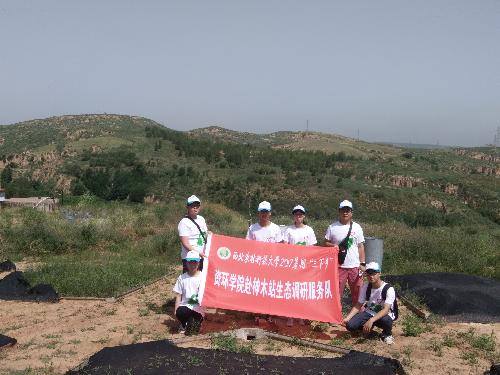 头顶骄阳,脚踏实地,由伟德体育官网及水利与建筑工程学院的三名大二及六名大一学生组成的赴神木站生态调研服务队开始了他们一天的实践生活。