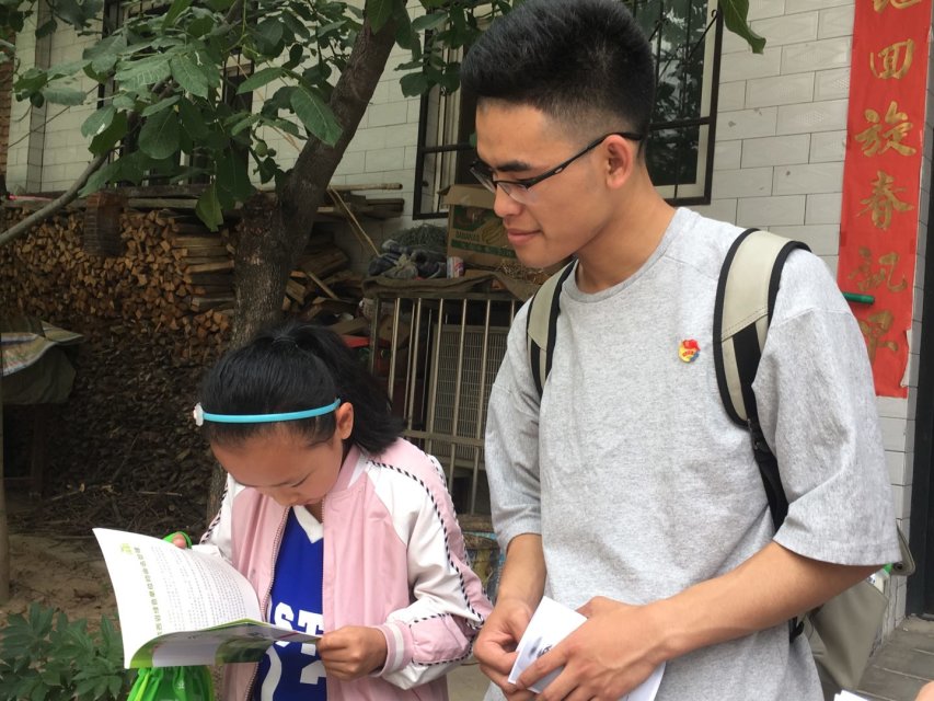 活动伊始,所有成员分为三组,在各个组长的带领下熟悉地段,划分区域,定点走访村民,发放公众环保知识手册,咨询当地存在的环境污染问题, 普及生活中常用的环保知识。与此同时向全村广播习近平总书记在全国生态环境保护大会上讲话的重要精神,宣传本次大会的主要内容,呼吁广大村民保护环境。通过走访,队员们了解到当地生态环境较往年有了显著改善,但仍然存在诸多问题,通过队员们的讲解,村民们也表示要从生活点滴中自觉保护环境,热爱环境。