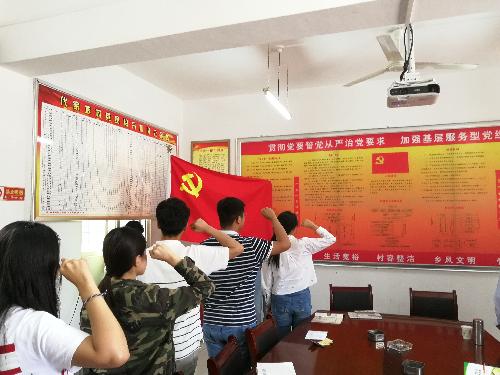 老党员的讲话至真至诚,抽茧剥丝,发人深省,同学们认真聆听,表示将继续认真学习、深入领会,努力提高学习和工作的质量,紧密地团结在以习近平同志为核心的党中央周围,为祖国生态文明建设贡献青春力量。谈话结束后,全体成员怀着崇敬的心情肃然起立,举起右拳,面对党旗宣读入党誓词。