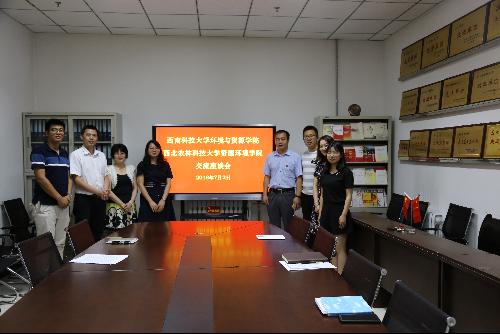 7月2日,西南科技大学环境与资源学院党委副书记陈莉,学院分团委书记邹高祥,学生办公室郑立琴,谭洪涛一行四人来我校调研交流,就第二课堂成绩单制度推进情况,学生科技活动开展经验,创新创业教育,社会实践及志愿者活动,新媒体文化建设等方面进行了深入的交流讨论。