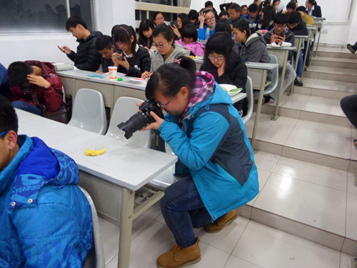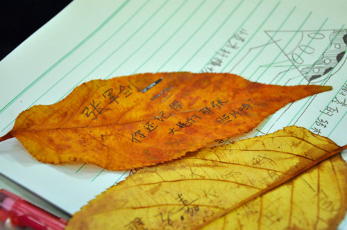 11月27日,伟德体育官网“蓝色梦想”系列培训之摄影培训开讲,学习之末,学员们以银杏、樱花树落叶为纸,书写情怀并相互拍照,实践所学摄影知识。