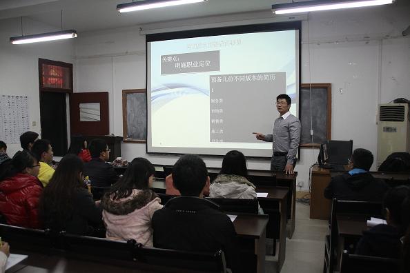 张老师以一句“让优秀成为一种习惯,让世界为你转身”展开了报告会,从就业形势、简历制作和面试技巧等方面与同学们进行了交流。他指出,一份成功简历的制作需要前期精心准备、后期及时总结。首先要明确自身职业定位,从兴趣爱好出发,做力所能及的工作,针对不同职位预备不同版本的简历。简历要简洁、有针对性、准确、专业,使用规范术语和格式,力争通过简历体现自身职业化形象。