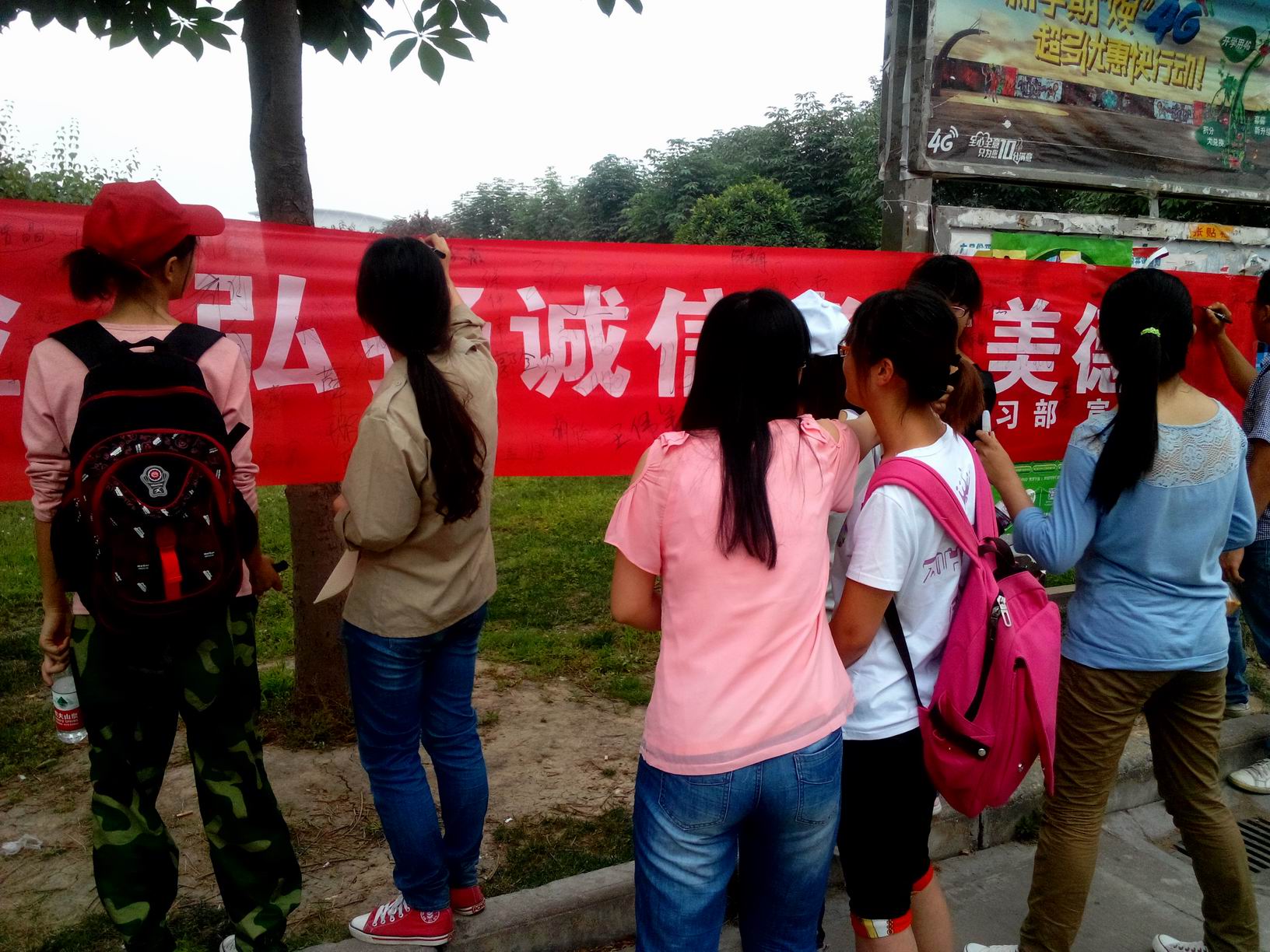 本次签名活动吸引了大量的同学参与,同学们纷纷在条幅上签下自己的名字以彰显诚信考试的决心。还有不少高年级同学在活动宣传板上认真写下自己的英语四六级考试经验,记录下了自己对四六级考试的美好祝愿。