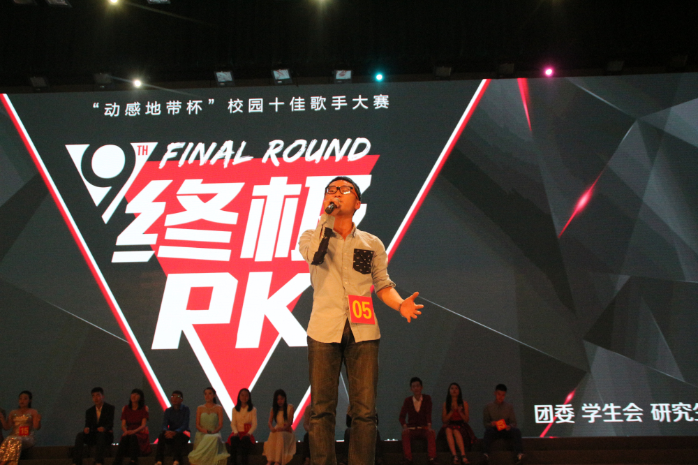我院水土保持与荒漠化防治142班的冯家豪同学不负众望,晋级了决赛,更是被冠以英文情歌王子之名。在比赛里,他演唱的we can't stop赢得了评委的好评,他的奇特的颤音以及良好的台风为他自己博得了大家的掌声。随后在最终PK环节,他与另一位选手合唱了大家耳熟能详的My love。他极具磁性的嗓音很好的演绎出了这首歌曲的魅力。
