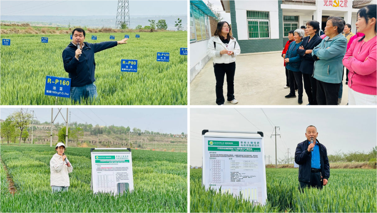 试验田里一片青壮的麦浪与周边略显稀疏的麦田形成鲜明对比。“今年春旱严重,你们的小麦怎么长得这么壮?”面对农户的疑问,张义涵同学解释道:“益于抗旱品种+精准施肥技术组合,提高了小麦的抗旱能力。”张达斌老师:“种植绿肥、秸秆还田、施肥有机肥,会提升土壤有机质,培肥地力,提高土壤蓄水保肥、供水供肥能力,小麦肯定会长得好。”
