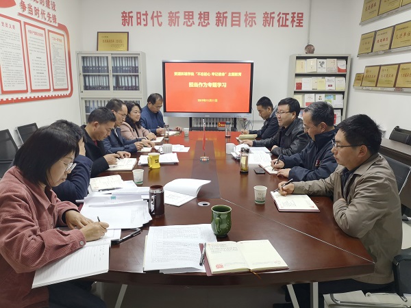 闫德忠重点领学了中国共产党第十九届中央委员会第四次全体会议公报、《中共教育部党组关于教育系统学习贯彻党的十九届四中全会精神的通知》、人民日报评论员文章《推动各方面制度更加成熟更加定型》。他强调,要深刻认识和把握全会的重大意义、精神实质和丰富内涵,与正在开展的“不忘初心、牢记使命”主题教育相结合,切实把思想和行动统一到全会精神上来。