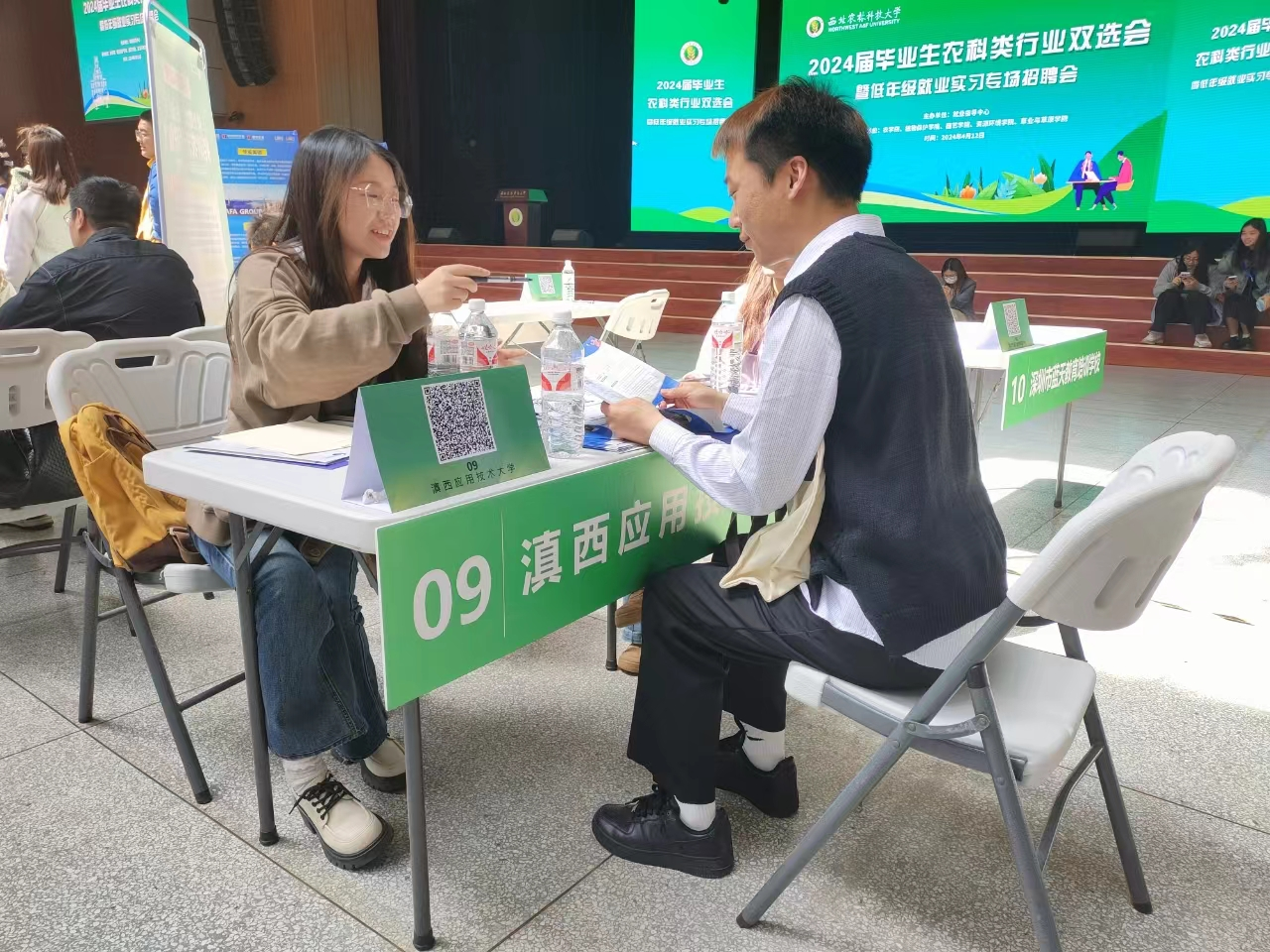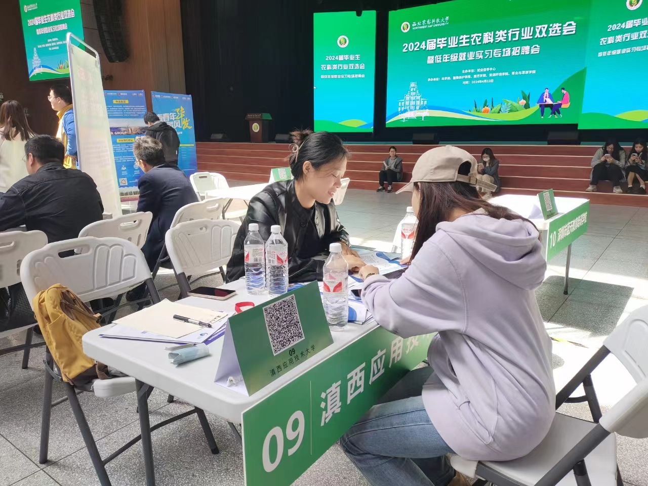 2024年4月12日,伟德体育官网在南校区南绣山活动中心举办朋辈学习经验分享活动——2024届毕业生农科类行业双选会。伟德体育官网邀请了工作在滇西应用技术大学2023届毕业生赵瑞瑞、邢莉彬给我们交流就业经验,从就业意向、求职等方面给与会同学进行分析与交流。此次双选会同学们响应热烈,反响良好。
