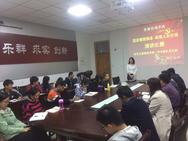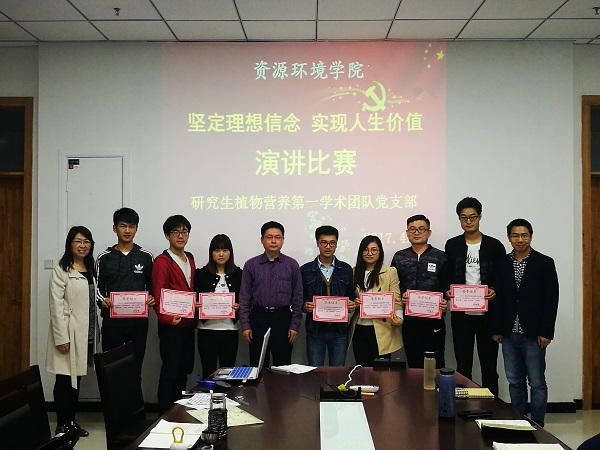 4月14日晚,我校省级先进党支部——伟德体育官网研究生植物营养学第一学术团队党支部在学院第一会议室举办了以“坚定理想信念,实现人生价值”为主题的演讲比赛,进一步增强党员、入党积极分子、团员的思想政治意识。演讲比赛由支部党员包明同学主持,党支部书记王朝辉教授、学院党务秘书李景林、团队青年教师刘金山博士到会观看比赛并给予指导和点评,团队全体师生党员到会观赛。