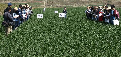 来到基地后,负责人先为大家介绍了基地的建设和发展,并带领大家参观了基地设施。之后,大家一起走进试验田,负责绿肥活化土壤锌、小麦品种营养差异、绿肥与氮磷配合、夏闲保水增产、覆膜栽培养分调控等田间试验的研究生,分别结合田间小麦的苗情长势,向老师和同学们详细讲解了他们各自试验的研究目的、研究内容、试验设计,典型效果,理论和应用意义等内容,并认真回答了老师和同学们的提问,就有关问题和处理之间的差异表现还进行了深入讨论。通过现场交流与学习,让大家更加深入地理解了相关研究工作的目的,认识了各试验设计原理与意义,体会到了试验精心实施与认真管理是多么重要,明白了理论知识与实践应用结合的重要性。