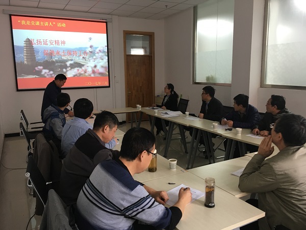 王健同志结合自己的工作,为大家讲解“弘扬延安精神,促进水土保持工作”。佟小刚同志以2017年“两会”为契机,着重分享了他学习“两会”的一些体会。田鹏同志从如何做一名好的高校老师切入,为大家讲解“争做一名包含正能量的党员”,对什么是正能量?如何找回自己的正能量?如何保证自己在做一名合格党员的同时做具有正能量的党员?三个问题做了详细讲解。