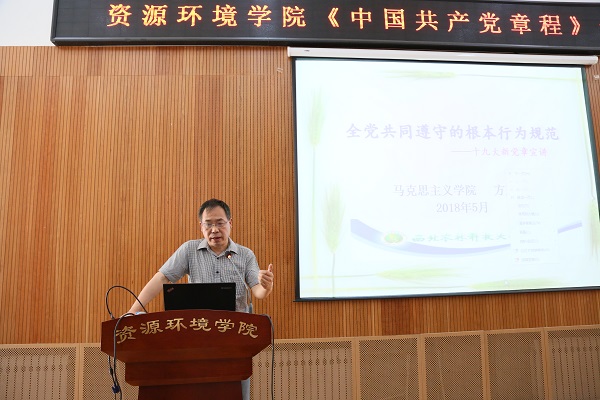 研究生第一支部书记罗万清:习近平总书记强调,党章是全党必须共同遵守的根本行为规范。党章也是一代代共产党人用实践检验过的智慧结晶。通过方教授精彩的讲解及对新党章深刻的解读,我对党章有了进一步的认识。作为党员我们必须加强学习党章,以党章为根本遵循,不忘初心,努力奋斗。在学术研究上有钻劲,多创新,为我校双一流建设增砖添瓦!