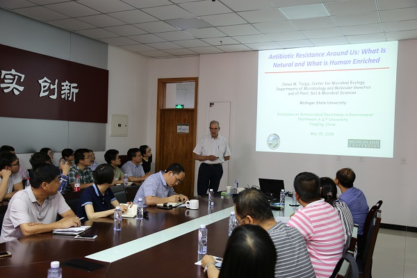 我院谷洁教授课题组近日邀请美国密歇根州立大学James Tiedje院士来我院进行交流访问。5月15日下午,James Tiedje院士在学院第一会议室应邀做了题为“Antibiotic resistance around us: what is natural and what is human enriched”的学术报告。