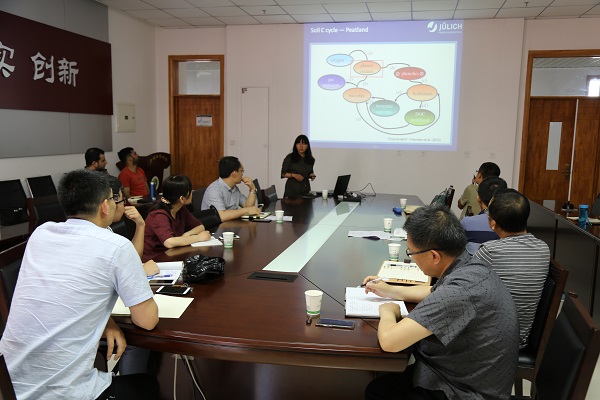 报告会上,柳淑蓉博士首先介绍了德国于利希研究中心的基本情况,并简单介绍了其硕士期间做的土壤有机碳的相关研究内容。接着详细介绍了在博士期间所做的土壤中NH4+硝化作用及反硝化作用过程中产生N2O所涉及的转化路线。从非生物作用出发,在胞外发现并测定NH2OH的数量,证实NH2OH在产生N2O的起到重要的非生物作用,为土壤N2O的释放的非生物机制提供进一步的理论支持。报告结束后,师生们就关于羟胺的作用机理的若干具体问题、以及在不同土壤类型中羟胺的贡献等方面进行了深入的交流和讨论。