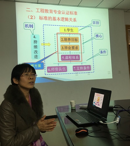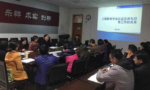为了深入学习贯彻全国教育大会精神,把坚持深化教育改革创新,坚持把服务中华民族伟大复兴作为教育的重要使命,坚持把教师队伍建设作为基础工作落到实处,资环学院教工环科党支部针对环境工程专业建设中将面临的工程教育认证问题,11月21日在学院307会议室,特邀水建学院农业水利工程系主任曹红霞教授为环境科学与工程系教师做相关专题报告,水保专业的老师也参加了学习。