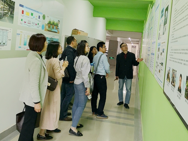 会后,系主任韩芸教授带领支部成员参观了环境工程专业的资料储存室,并展示了近年来环境工程专业的毕业设计范本。石辉教授和教学实验中心葛碧洲高级工程师带领参观了国家级环境类专业教学实验中心,对其教学实验中心的运转方式、实验设备自主研发能力等,支部成员大为触动。
