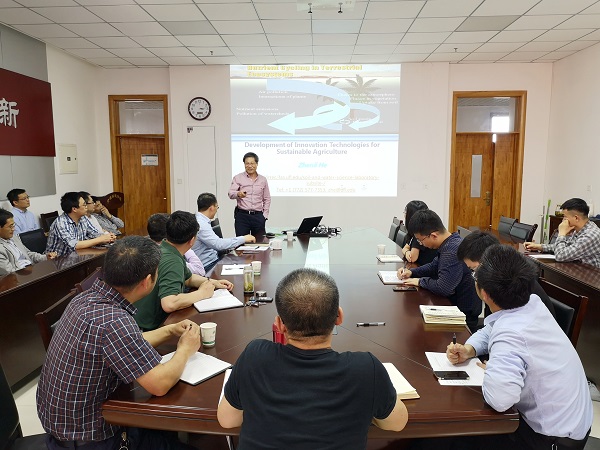 4月25日,应伟德体育官网邀请,美国佛罗里达大学食品与农业科学研究所何振立教授来我院与师生进行学术交流,做了题为“Development of Innovation Technologies for Sustainable Agriculture”的学术报告。