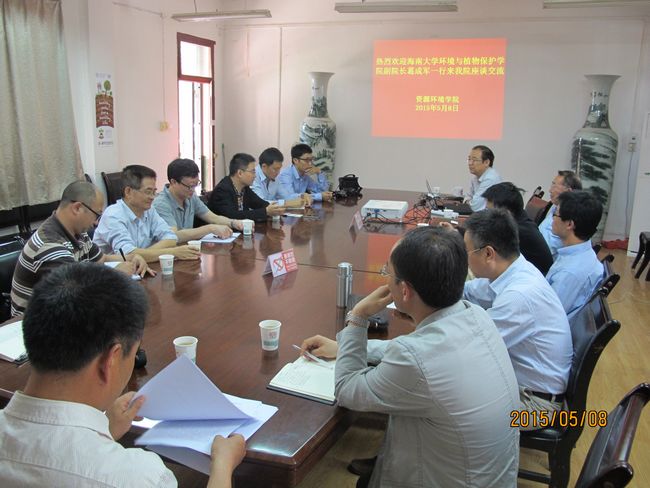 5月8日下午,海南大学环境与植物保护学院副院长葛成军一行6人来我院座谈交流,我院高亚军副院长,环境科学与工程系呼世斌教授、曲东教授、副系主任,实验室负责人参加了座谈会。