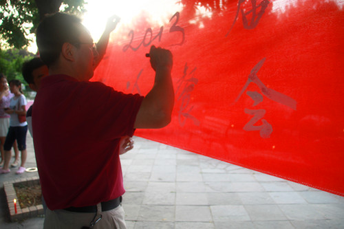 柔和的烛光将冷餐会现场衬托的异常美丽,美妙的音乐和喷泉的盛开,加上精心准备的餐点,到场师生很快沉浸其中。学院院长吕家珑教授在餐会开始前举杯为2013届毕业生祝言送行。席间毕业生相互讲述着自己求职经历,工作地址,以方便日后联系。大家纷纷在条幅上签字留念,把最美好的祝福送给毕业生。