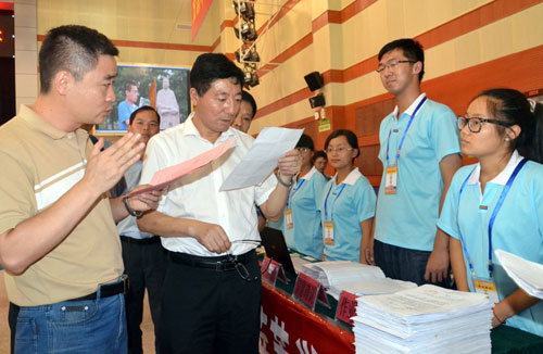 孙其信校长在检查伟德体育官网新生的暑假“作业”
