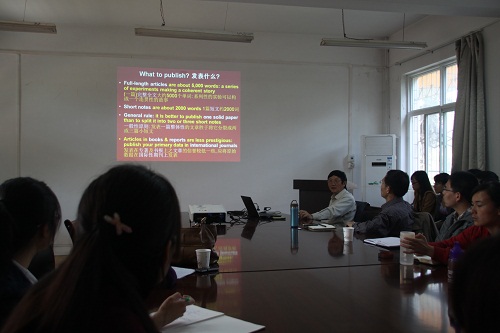 4月27日上午,应我院周建斌教授之邀,西澳大利亚大学的何新华副教授为我院研究生和青年教师们作了题为“How to write papers for international journals”的精彩报告。何新华副教授于澳大利亚昆士兰获得博士学位后,先后在美国、日本和澳大利亚等国家进行研究学习,其主要研究方向为菌根生理生态,在菌丝网络在生态系统氮素双向转移方面取得突出成就,发表高水平文章数十篇,并与Plant and Soil的主编Hans Lambers合作编译了《如何写好英文科学论文》等书,多次就英文论文写作方面做过报告。