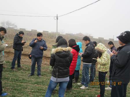 2012年12月14-16日,我院土壤学、土地资源与空间信息技术等专业2012级25名研究生在任课老师王益权、学院中心实验室王永一和研究生管理办公室任晓萍等老师的带领下赴渭南县交口灌区、大荔县八鱼乡、朝邑、沙湾以及盐池凹、合阳甘井乡旱原生态试验站及洽川湿地、富平县卤泊滩等地进行为期三天的研究生《土壤退化修复与重建》课程校外教学实习,这是我院首次开展研究生校外课程实习工作。