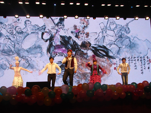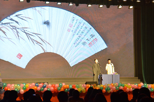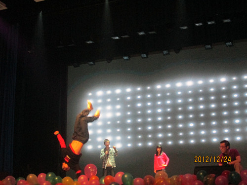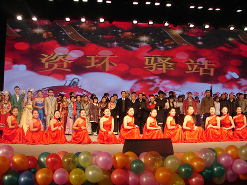 伴随着新年倒计时,“资环驿站”2013年元旦晚会拉开了帷幕。晚会分为“青春驿站”、“和谐驿站”、“开心驿站”、“缤纷驿站”四个篇章,内容丰富,异彩纷呈。资环舞蹈队获奖舞蹈《一抹红》舞艺精湛、喜庆热闹,环科121班全体同学和班主任带来的话剧《睡美人》、相声《买佛龛》妙语连珠,诙谐幽默,少数民族师生表演的舞蹈《舞动西域》、《藏舞》等节目展现了资环大家庭的和谐团结;班主任小合唱《春天里》、特邀嘉宾独唱《小背篓》深情款款,令人感动;富有创意的街舞《神奇的鞋子》、资环121班全体同学和班主任集体表演的舞台剧《Mini funny》、《资环好声音》、研究生创新团队三句半《笑侃资环》等节目也使晚会精彩不断。