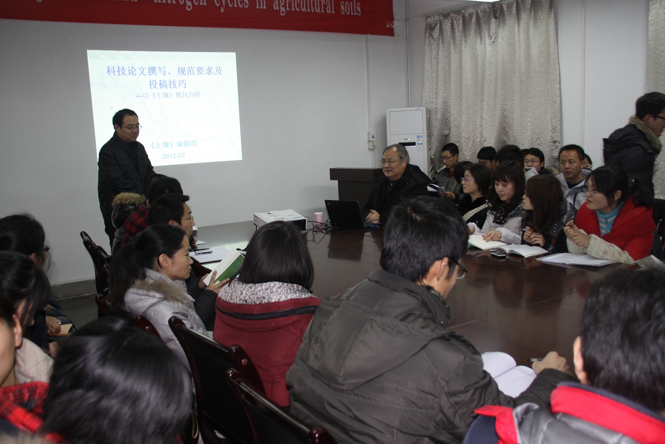 2012年2月24日上午,在伟德体育官网第一会议室,《土壤》杂志编辑部主任周德智研究员做了题为《科技论文撰写、规范要求及投稿技巧 》的学术报告,我院师生60多人参加了报告会,高亚军副院长主持会议。 在报告会上,周德智研究员详细地讲述了科技论文特征及分类、科技论文写作步骤、科技论文格式要求、科技论文写作和投稿应该注意的几个问题、投稿技巧等问题。周德智研究员渊博的知识和精彩的报告赢得了广大师生热烈的掌声和一致好评。 会后,我院部分师生与周德智研究员就如何投稿等相关问题进行了进一步探讨和交流。