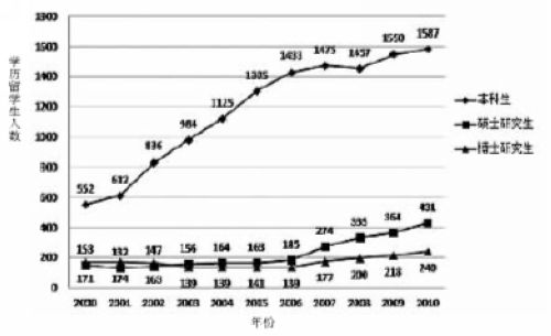 2000年—2010年北京大学学历留学生在校人数增长情况