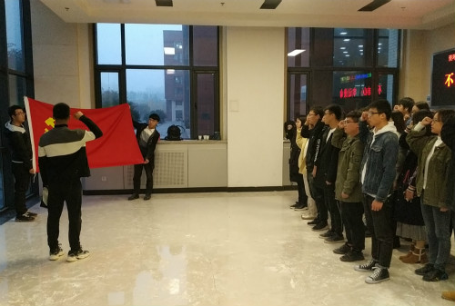 最后,全体成员重温入党誓词。面对鲜红的党旗,高举右拳,字字铿锵,重温入党誓词,彰显了全体党员不忘初心、牢记使命的坚定政治信念。李鹏同志在重温入党誓词后,说道:“不禁让我想起三年前宣誓入党誓词的画面,当时我的初心是希望以我的能力和行动为社会、为祖国奉献出一份力量。如今,我认真学习专业知识,做好自己的同时乐于帮助他人,用自己的知识和行动去坚持自我初心,我自豪,我是一名光荣的中国共产党员。”
