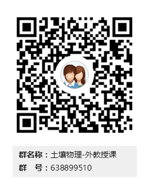 备注:如遇国家法定节假日或学校重大活动,授课时间会临时调整,敬请关注通知。具体授课时间及地点将在土壤物理学外教授课QQ群(638899510或扫描通知下方二维码)中通知。