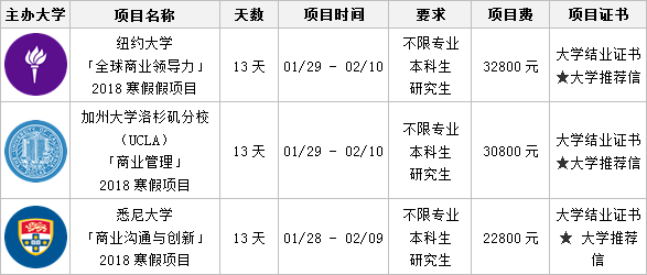 关于开展2018寒假纽约大学、加州大学洛杉矶分校、悉尼大学访学项目的通知